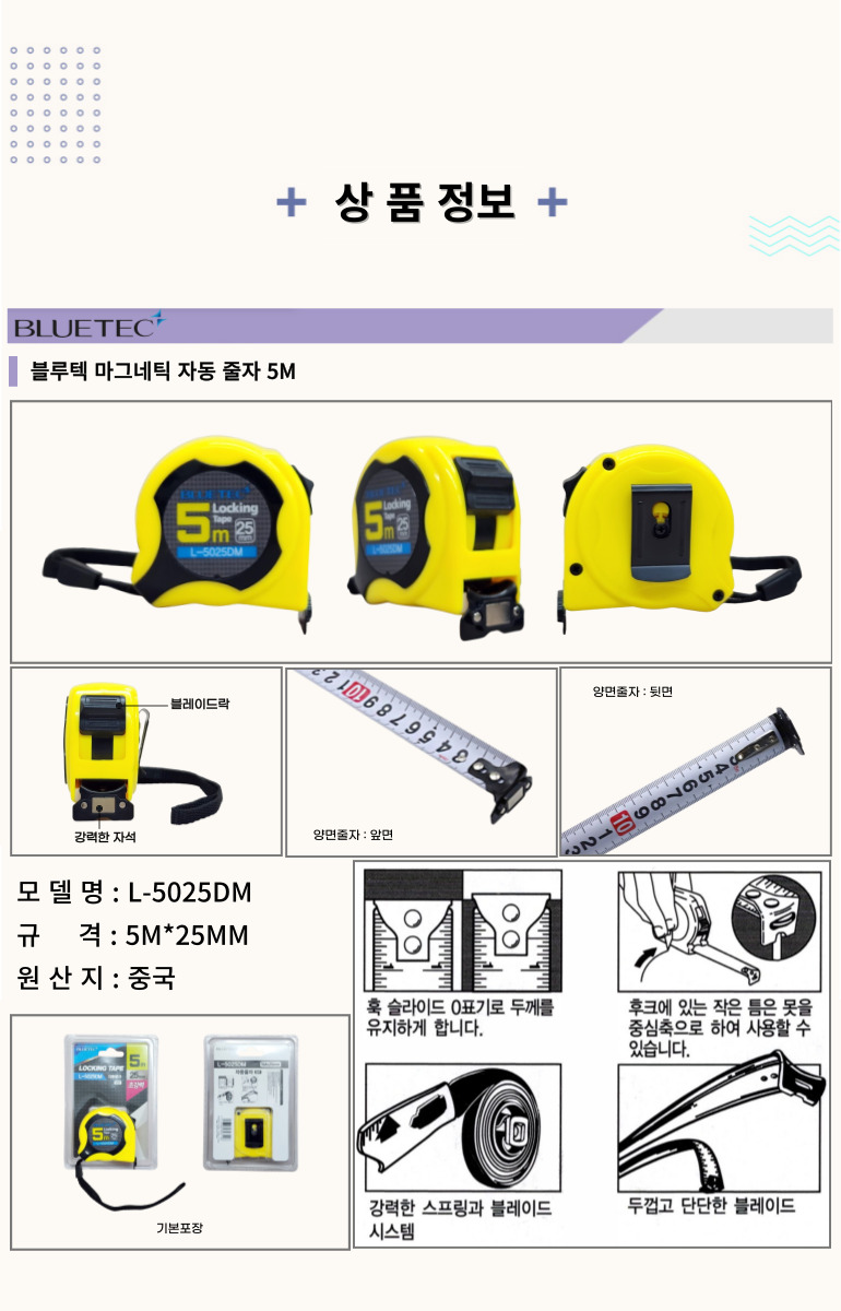 • 블루텍 마그네틱 자동 줄자 5m