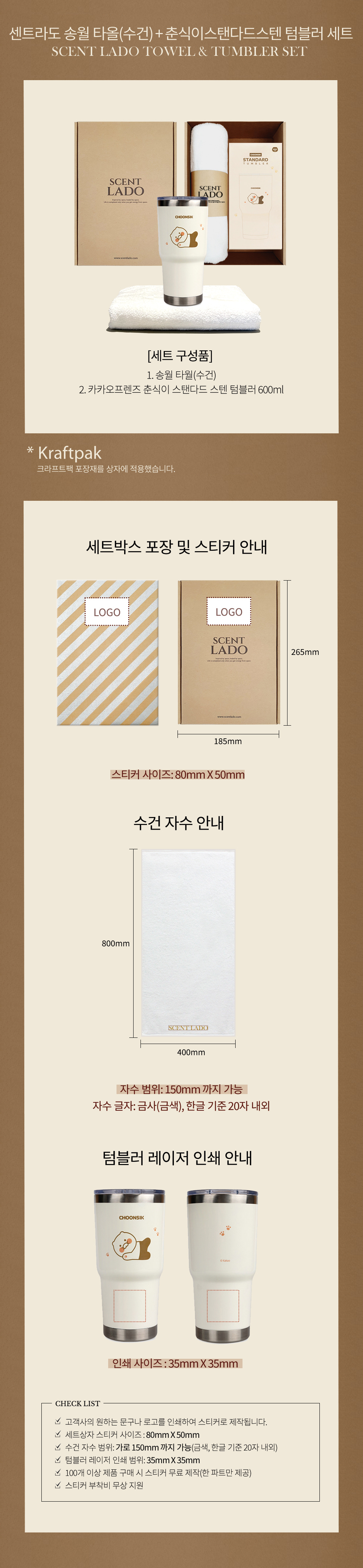 • 센트라도 송월 타올(수건)+카카오 춘식이스탠다드스텐 텀블러 세트