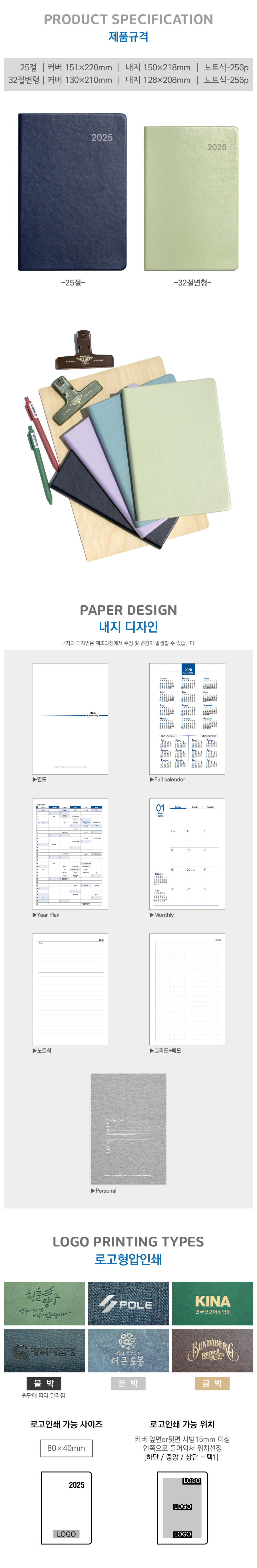 25절 내지[150×218mm]/습식PU원단/라임,네이비,클라우드블루,라벤더