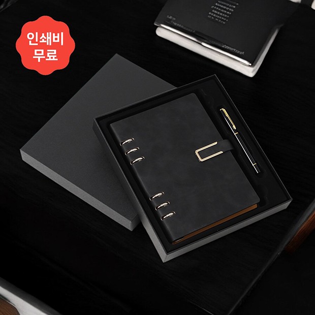 • 클래식 레더 다이어리 볼펜 세트 사무실 다이어리 블랙