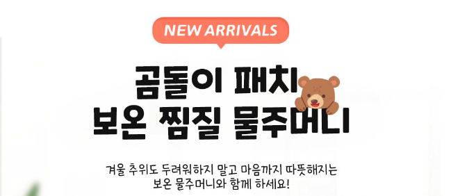 • 곰돌이 패치 물주머니 곰 손난로 찜질팩 허리 생리통 감기 핫팩