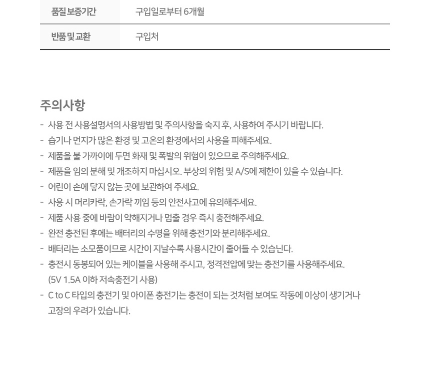 * 구성 : 본체, C타입 충전케이블