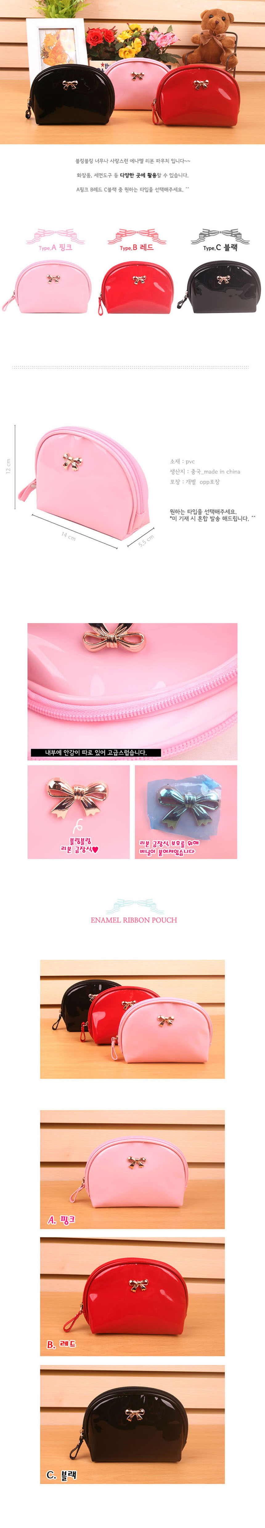 • 에나멜 리본 파우치 - 3종  [PH124]
