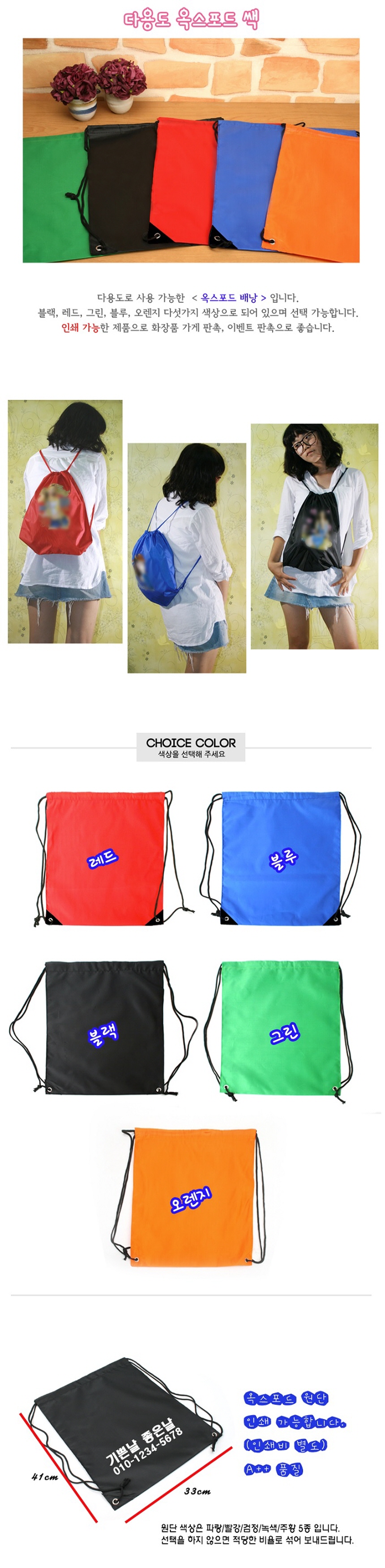 • 다용도 옥스포드 쌕 (스포츠배낭) [BG010]