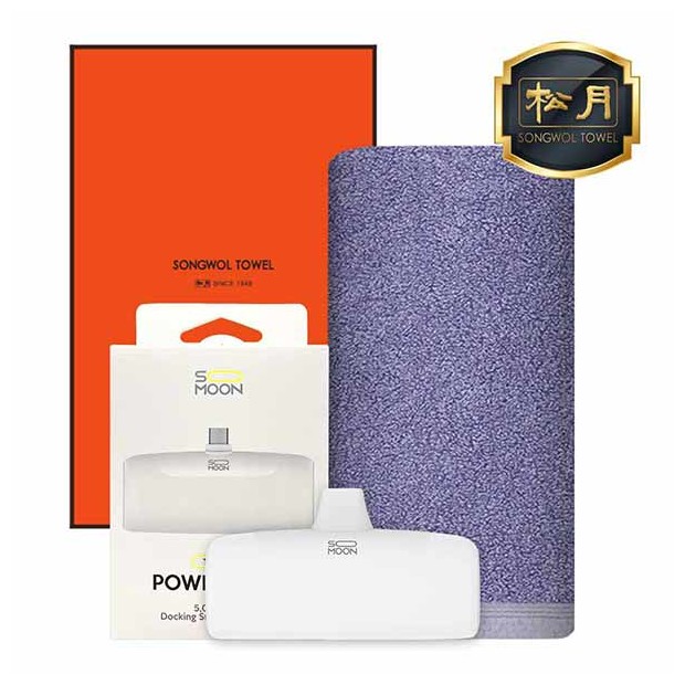 • 송월 도킹 보조배터리 5000mAh 세트 (40수 160g 타올 1매 + 도킹보조배터리 1개)