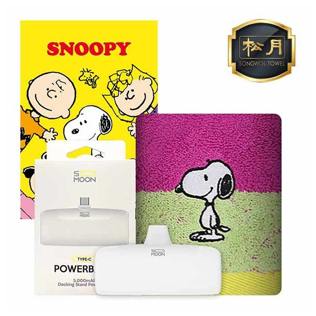 • 송월 도킹 보조배터리 5000mAh 세트 (스누피컬러36 타올 1매 + 도킹보조배터리 1개)