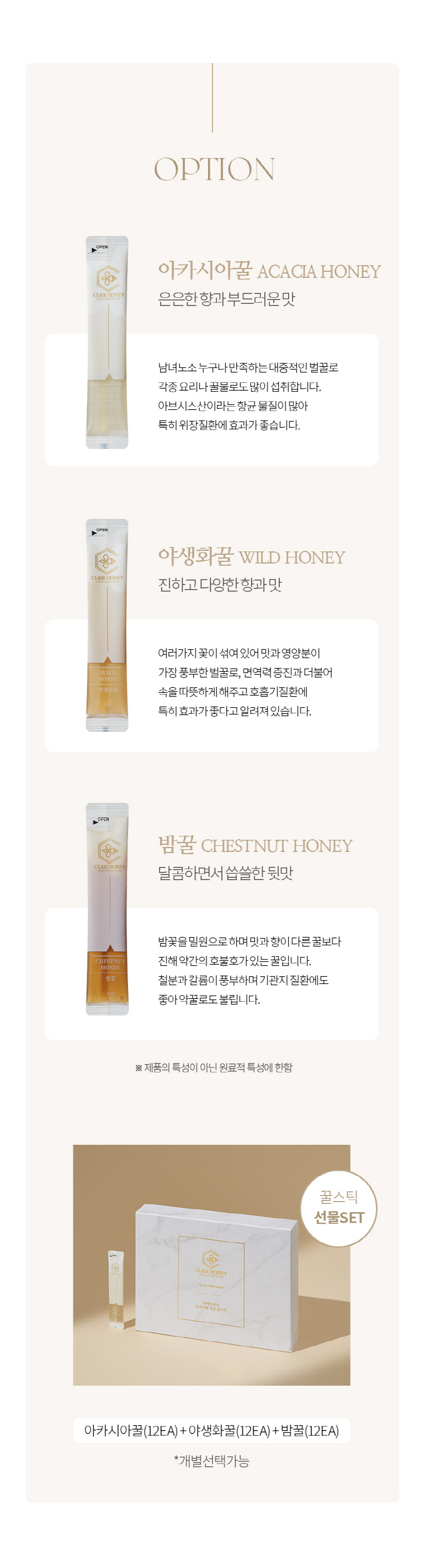 • 끌레르허니 꿀스틱 선물세트 100% 천연 국산
