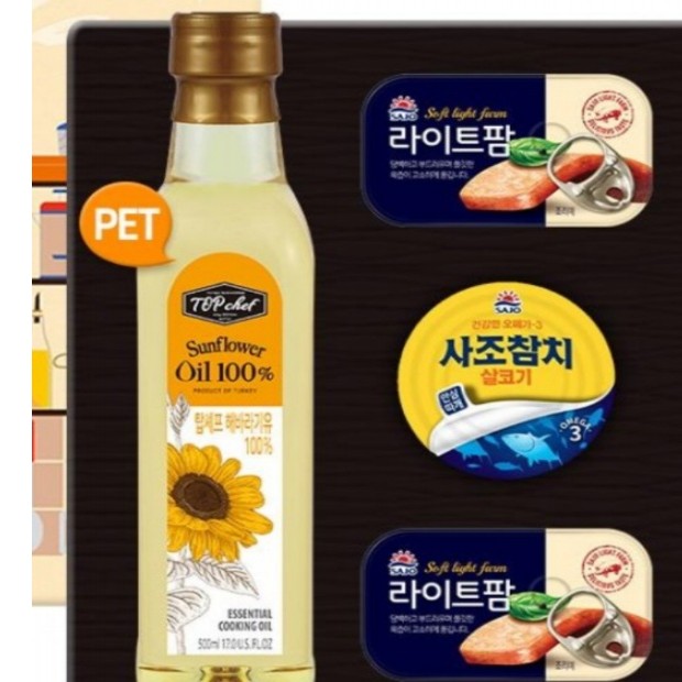 • 해바라기유 + 사조참치1 + 라이트팜2 명절 선물 세트, 스팸 해바라기유 식용유 설선물 햄선물 햄세트 설날 추석