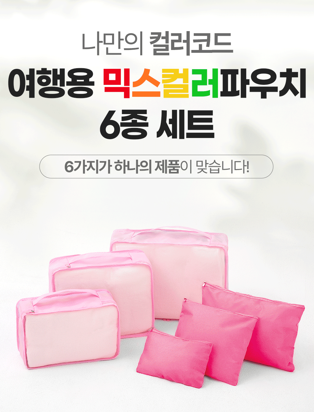 • 내맘대로 8컬러 믹스 여행용파우치 6종세트 캐리어정리 6P 실속구성