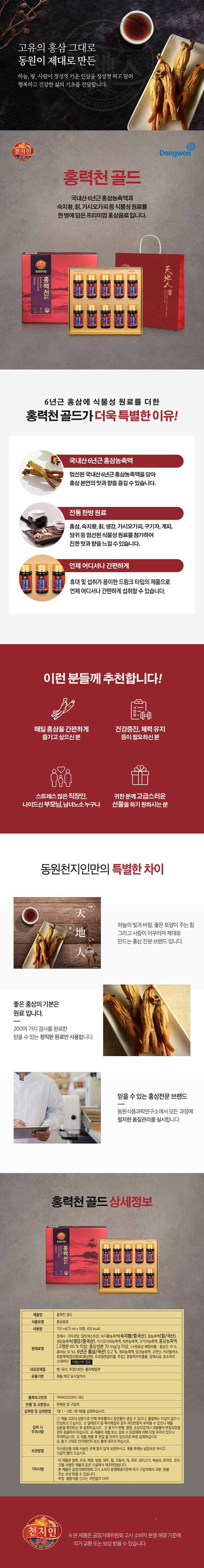 • 동원 천지인 홍력천 골드 홍삼 농축액 건강음료