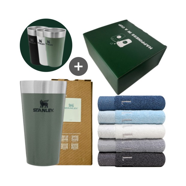 • 스탠리 파인트컵 그린 영신타올 엘르 40수 코마 패턴 선물세트