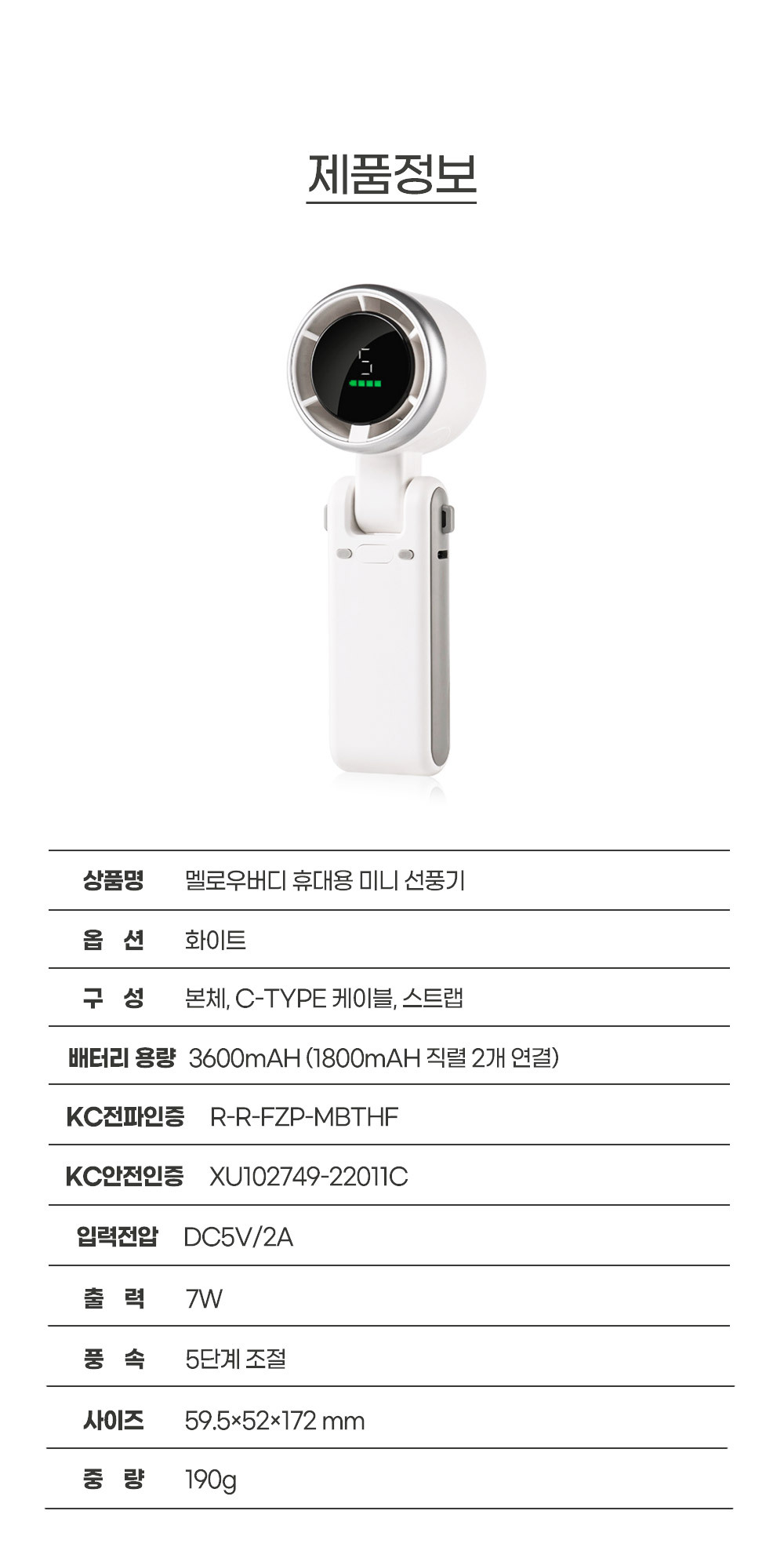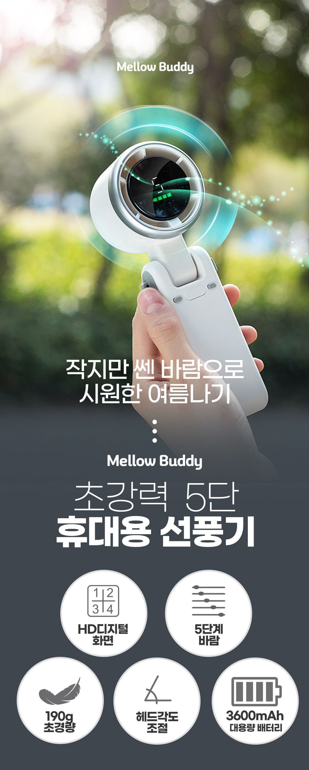 • 멜로우버디 초강력 5단 미니 휴대용 선풍기 각도조절