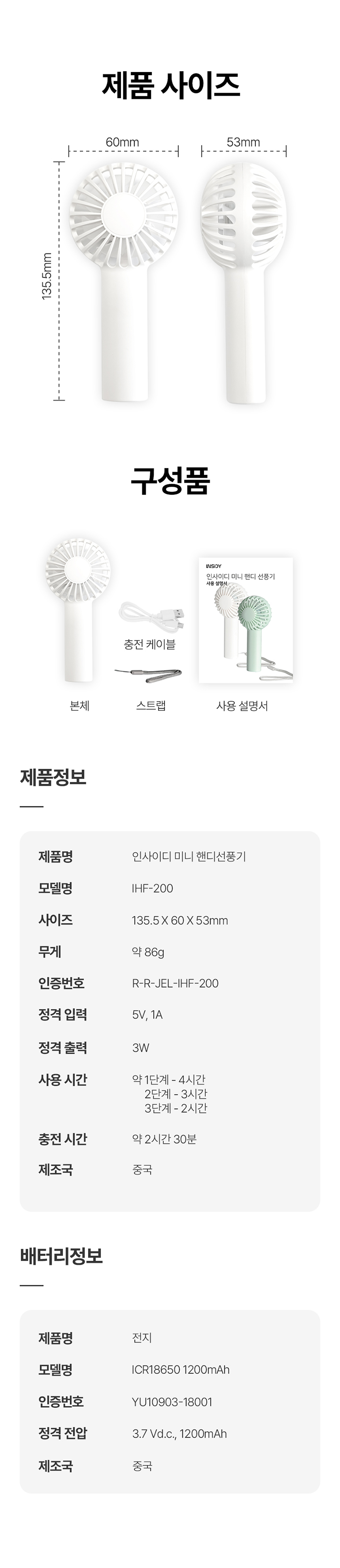 • 인사이디 IHF-200 휴대용 미니 핸디 선풍기