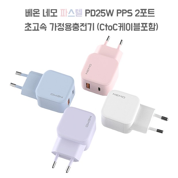 • 베온 네모 파스텔 PD25W PPS 2포트 초고속 가정용충전기