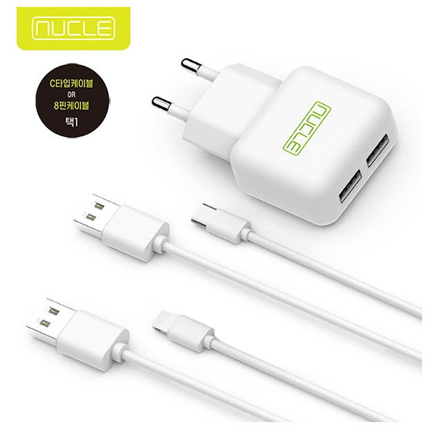 • 뉴클 2.1A 2포트 가정용 충전기 (케이블포함)