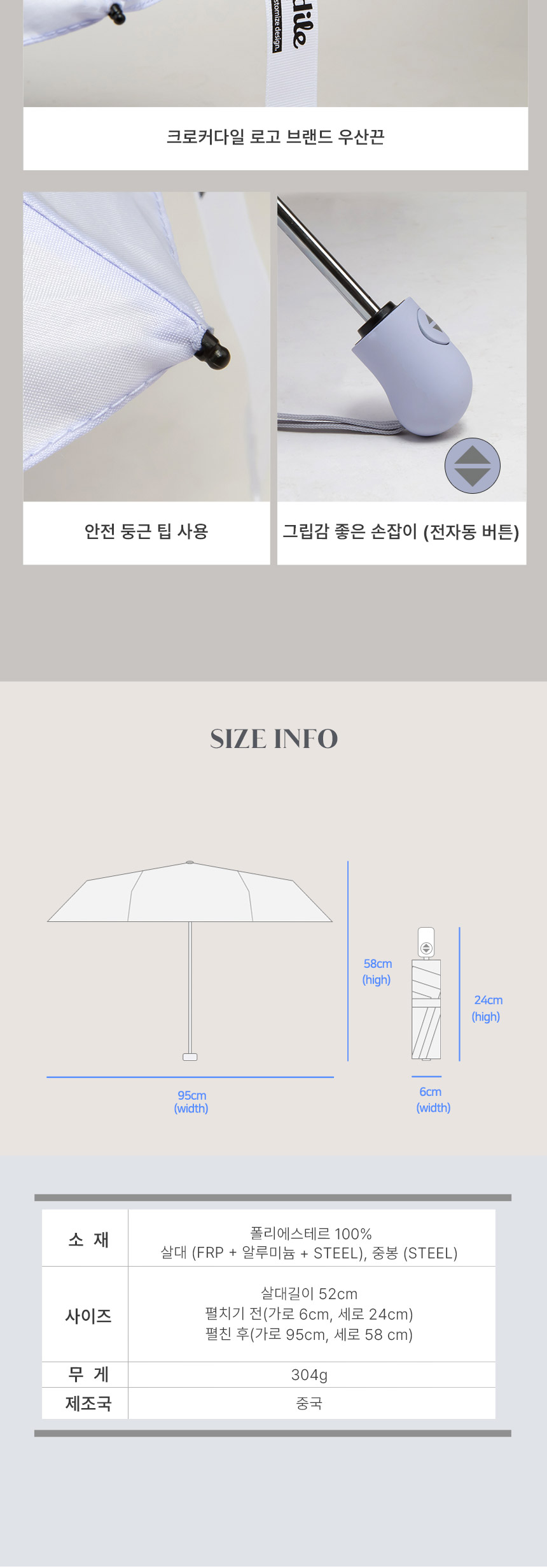 •  크로커다일 5단 레터링 전자동 우산