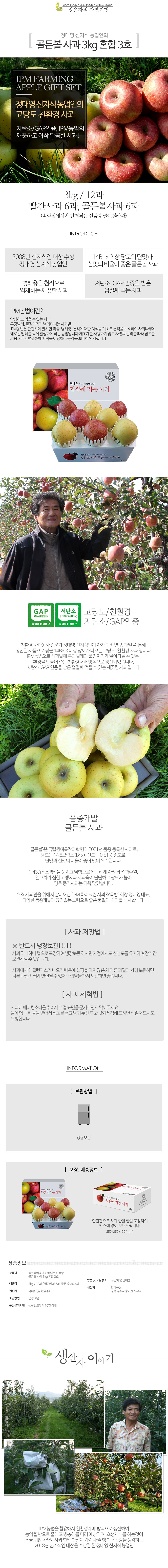 • 정대영 신지식농업인 14brix 이상 고당도, GAP 인증_자연마시_백화점에서만 판매되는 신품종 골든볼 사과 3kg_혼합 3호