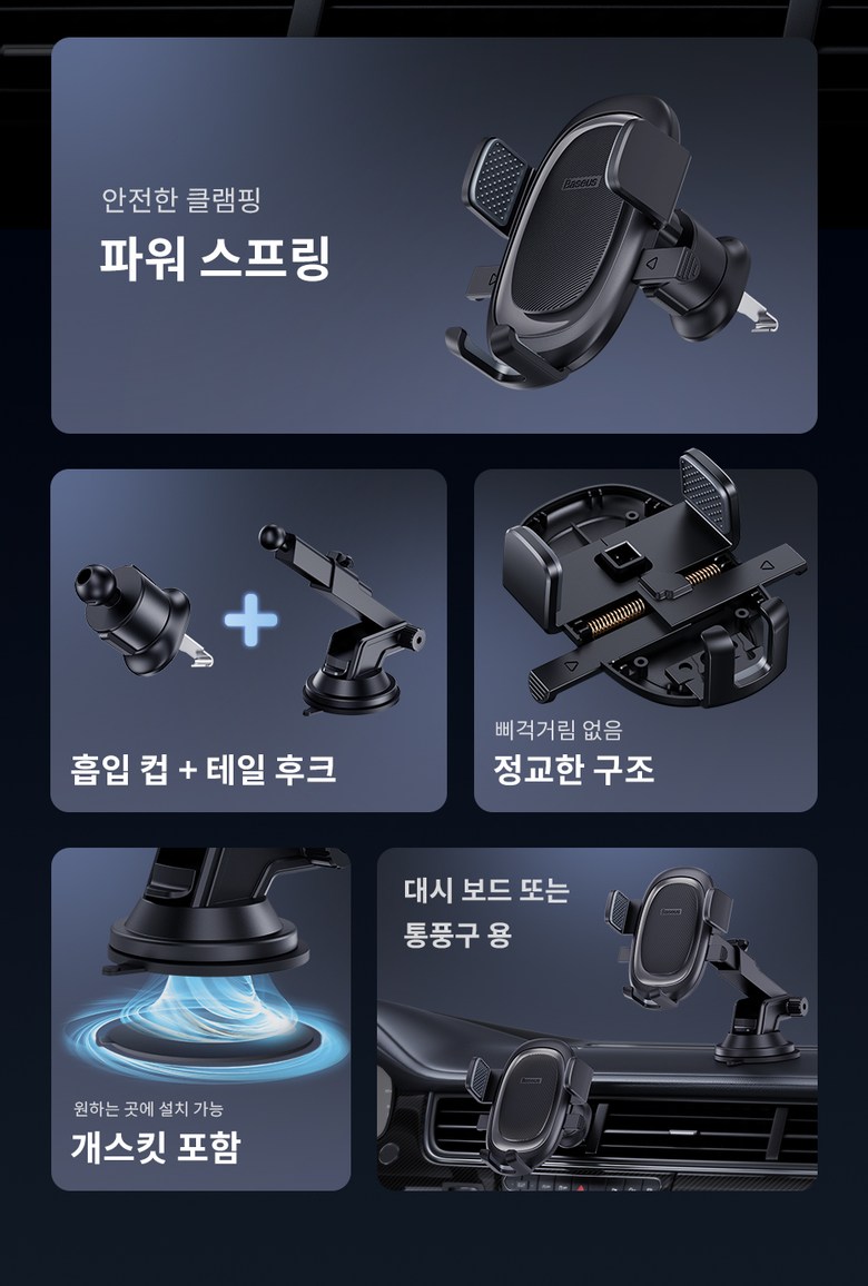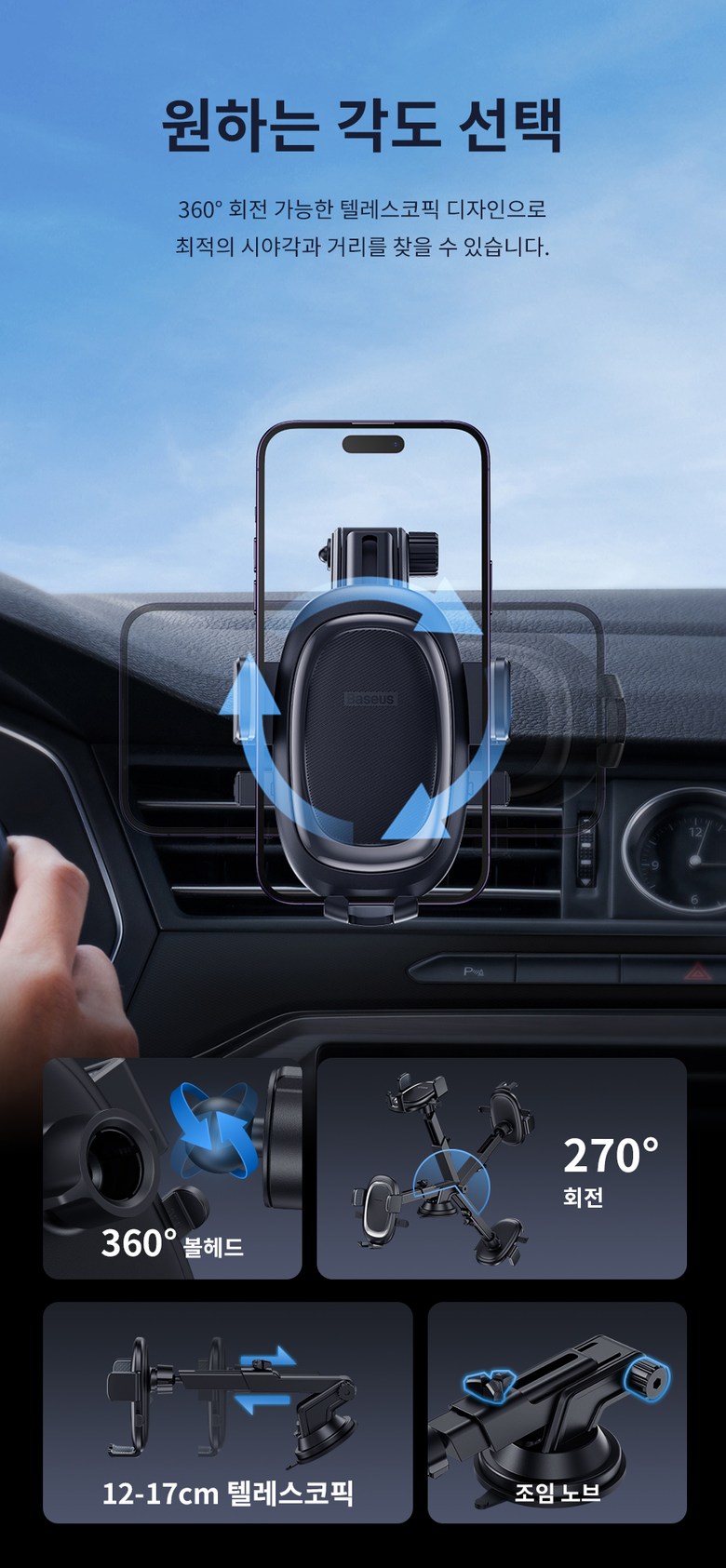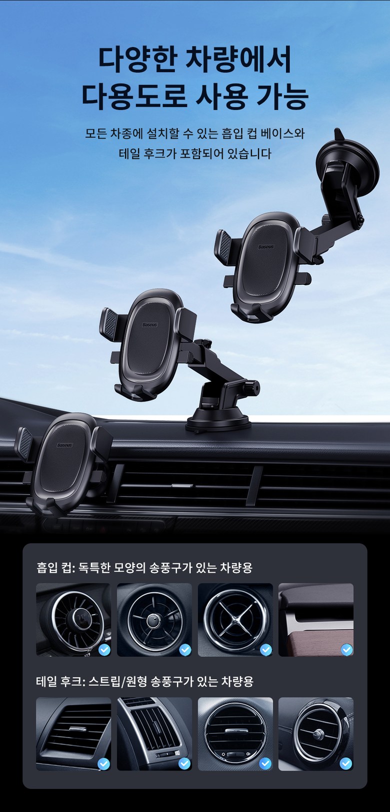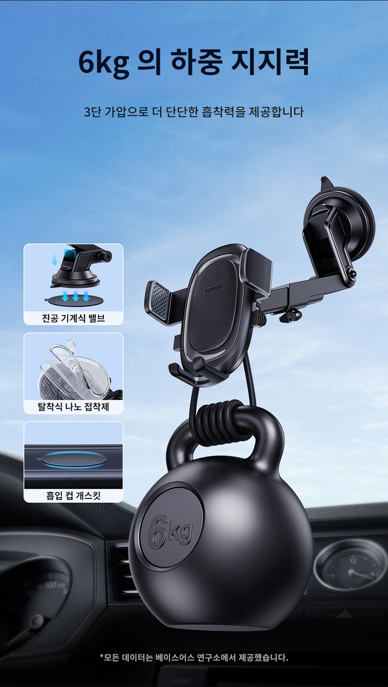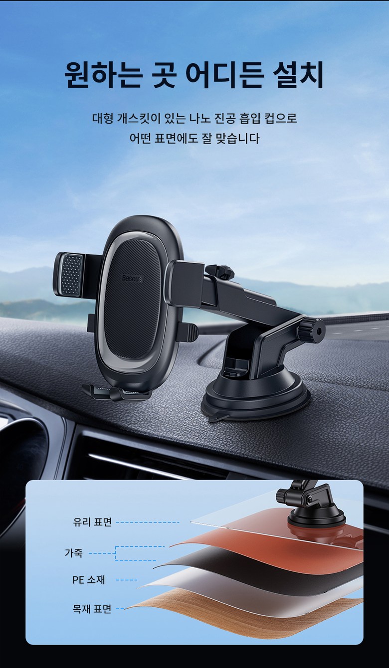 • 베이스어스 차량용 핸드폰 거치대 대시보드 앞유리 부착형
