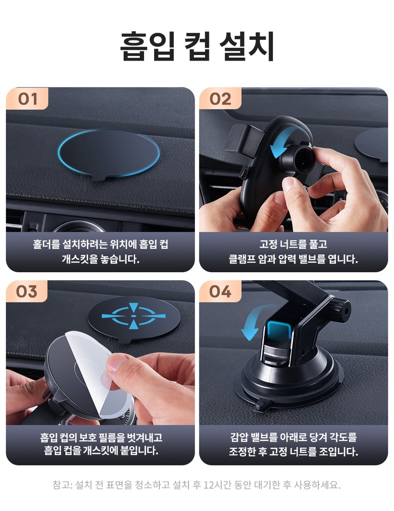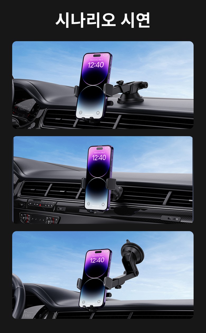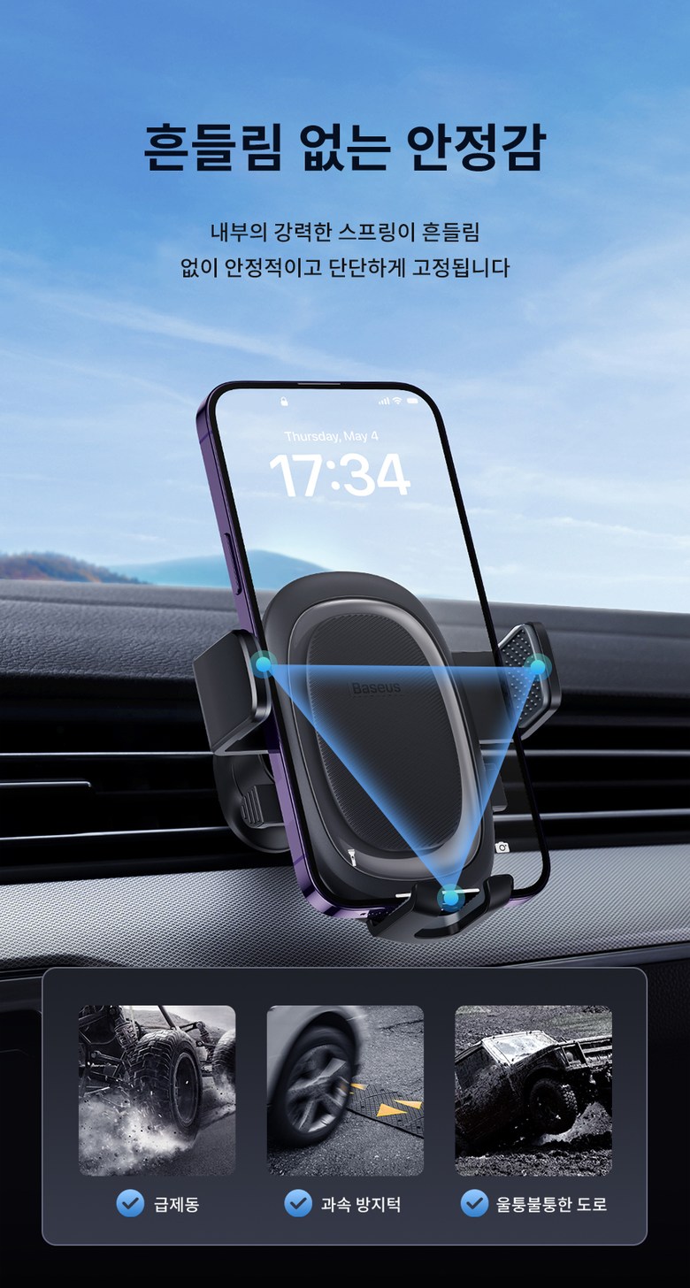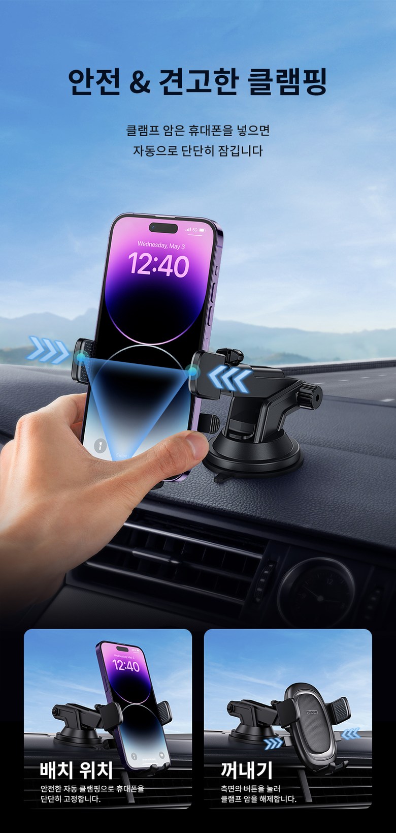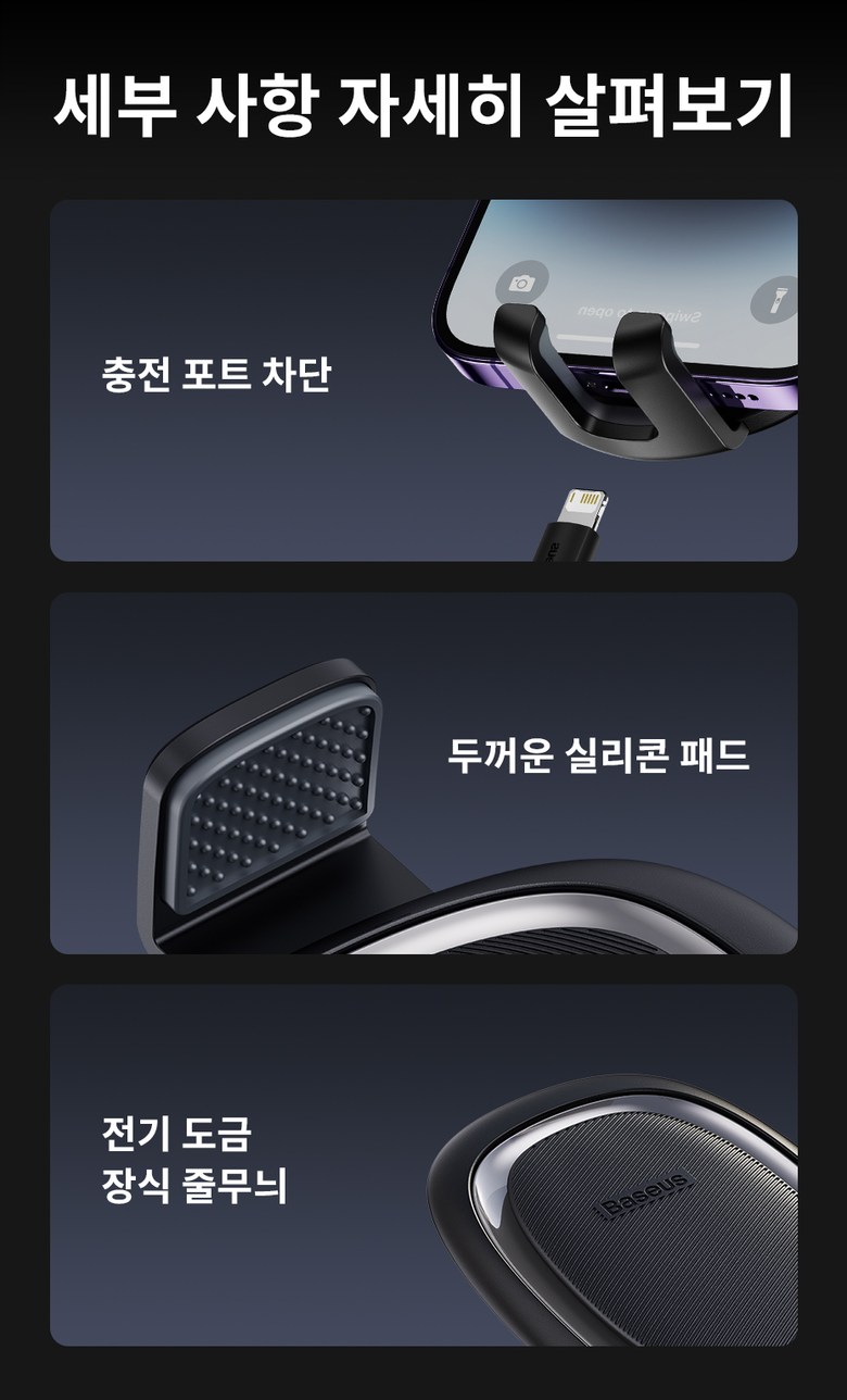 • 베이스어스 차량용 핸드폰 거치대 대시보드 앞유리 부착형