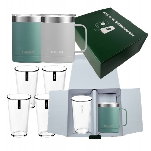 글라스락 머그 텀블러 + 글라스락 유리 컵 + 기프트박스