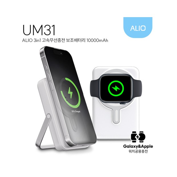 •  ALIO 거치형 UM31 고속충전 맥세이프 보조배터리 10000mAh(워치공용충전)