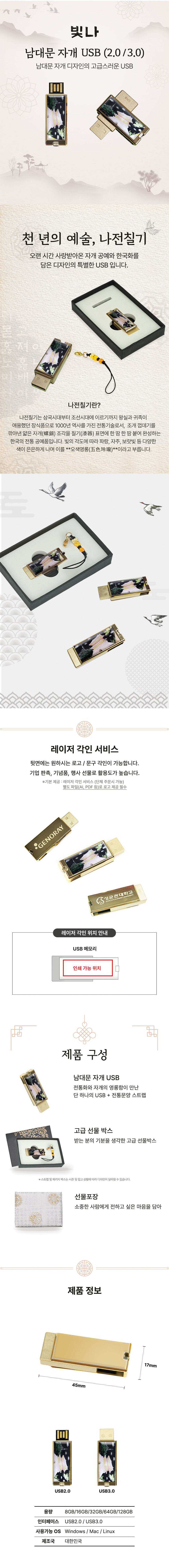 • 빛나 남대문 자개 USB메모리 (USB2.0) 8GB~128GB