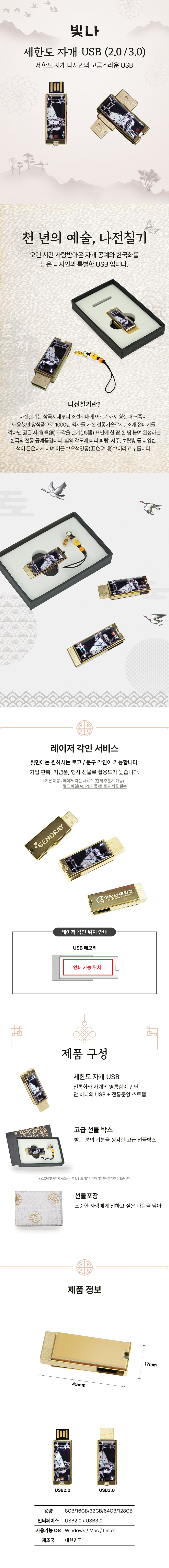• 빛나 세한도 자개 USB메모리 (USB2.0) 8GB~128GB
