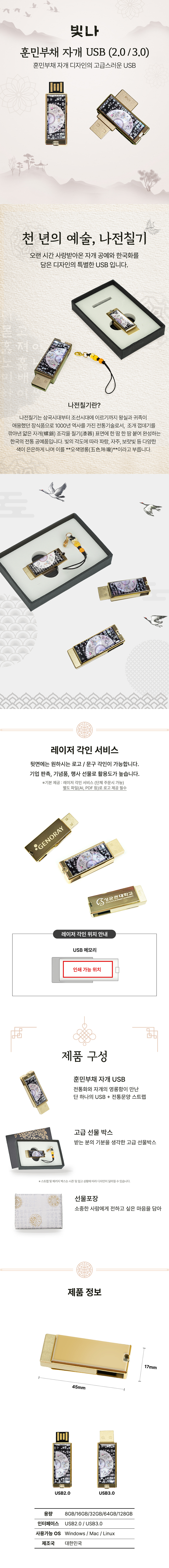 • 빛나 훈민부채 자개 USB메모리 (USB2.0) 8GB~128GB