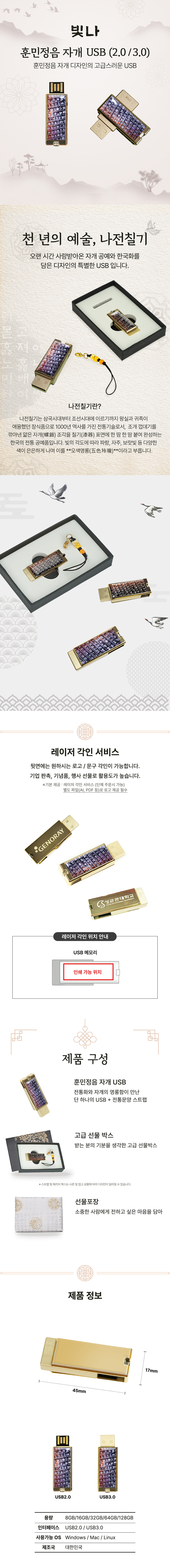 • 빛나 훈민정음 자개 USB메모리 (USB2.0) 8GB~128GB