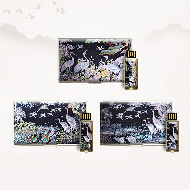 • 빛나 학 시리즈 자개 2종세트 (명함케이스+USB메모리) (USB2.0) 4GB~128GB