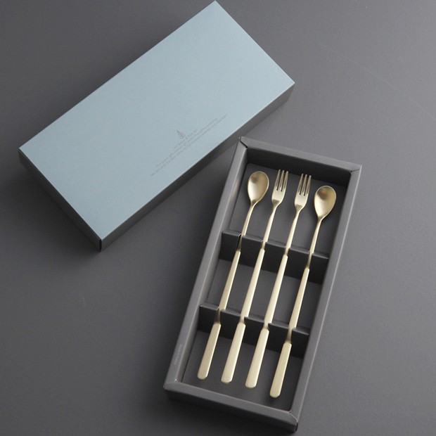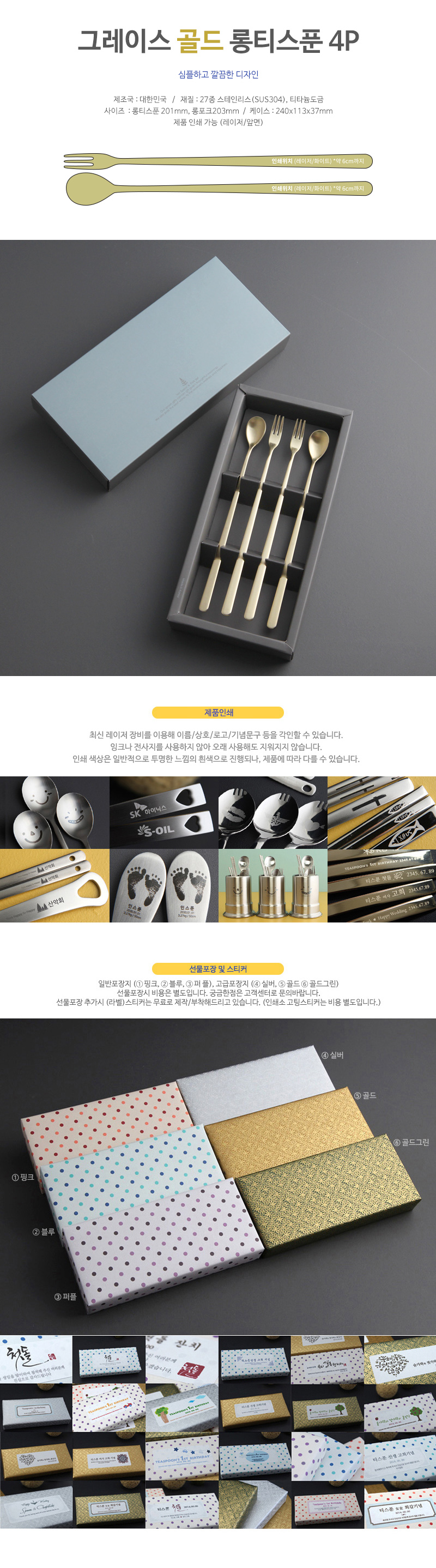 롱티스푼2,롱포크2,종이케이스 / 티타늄골드