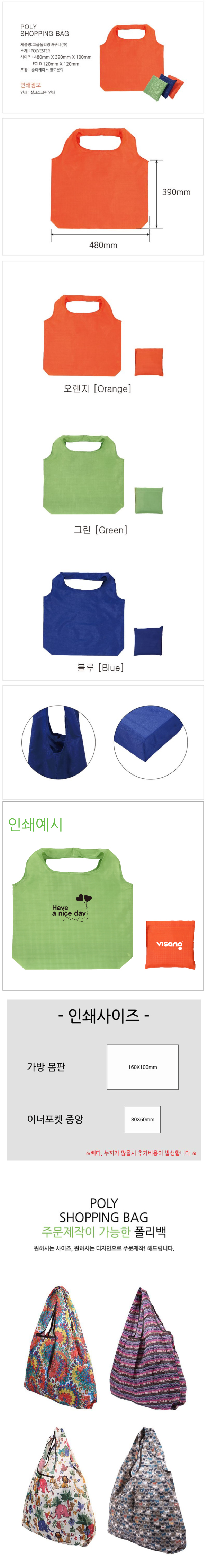 폴리 장바구니(중) / 오렌지,블루,그린 발주전 색상재고 문의