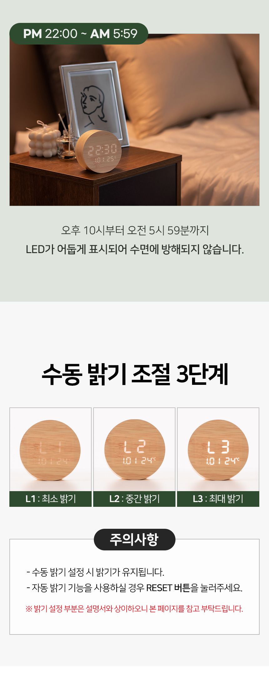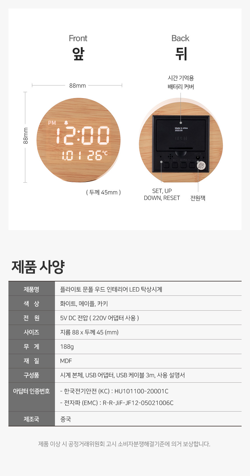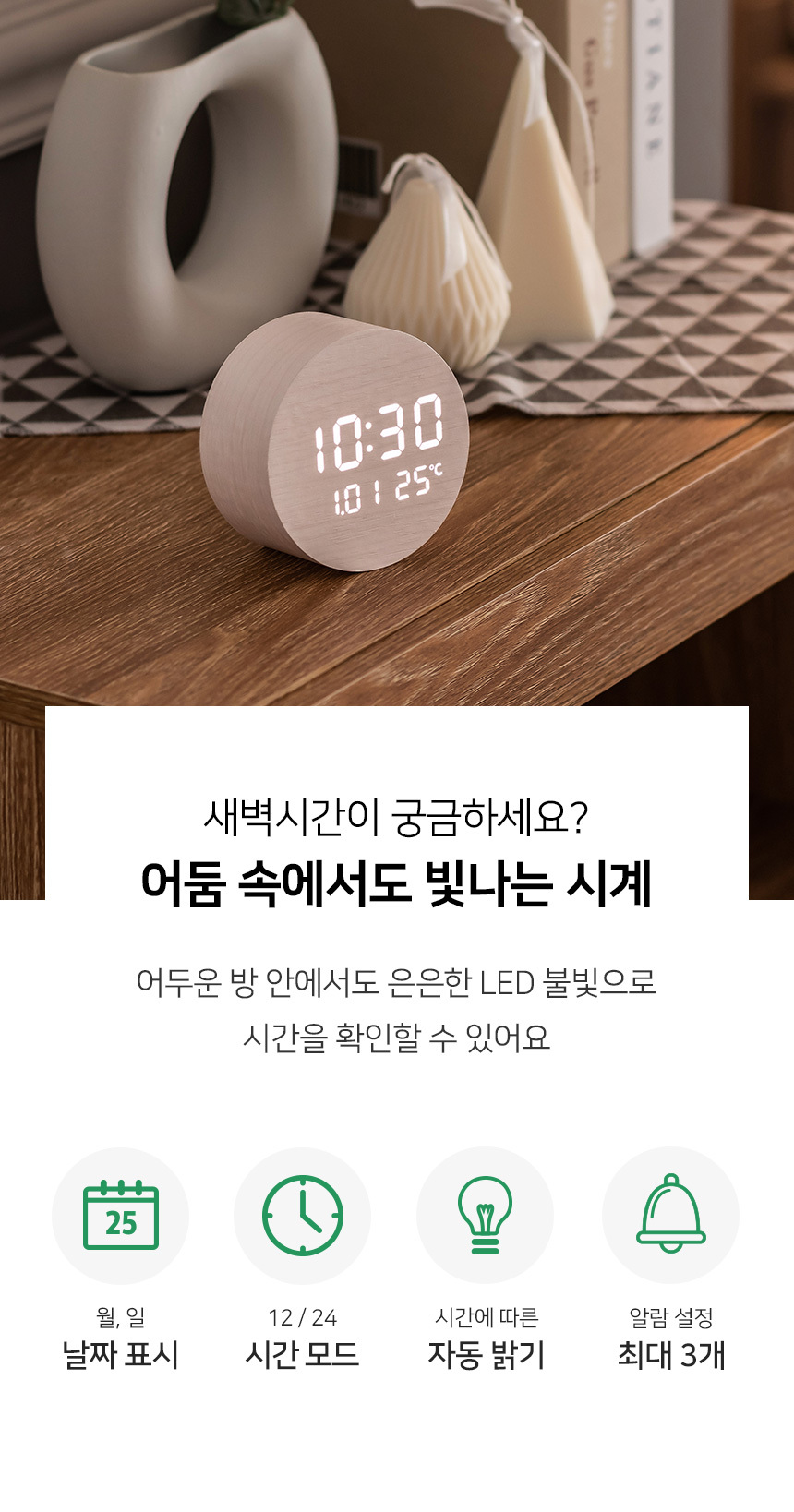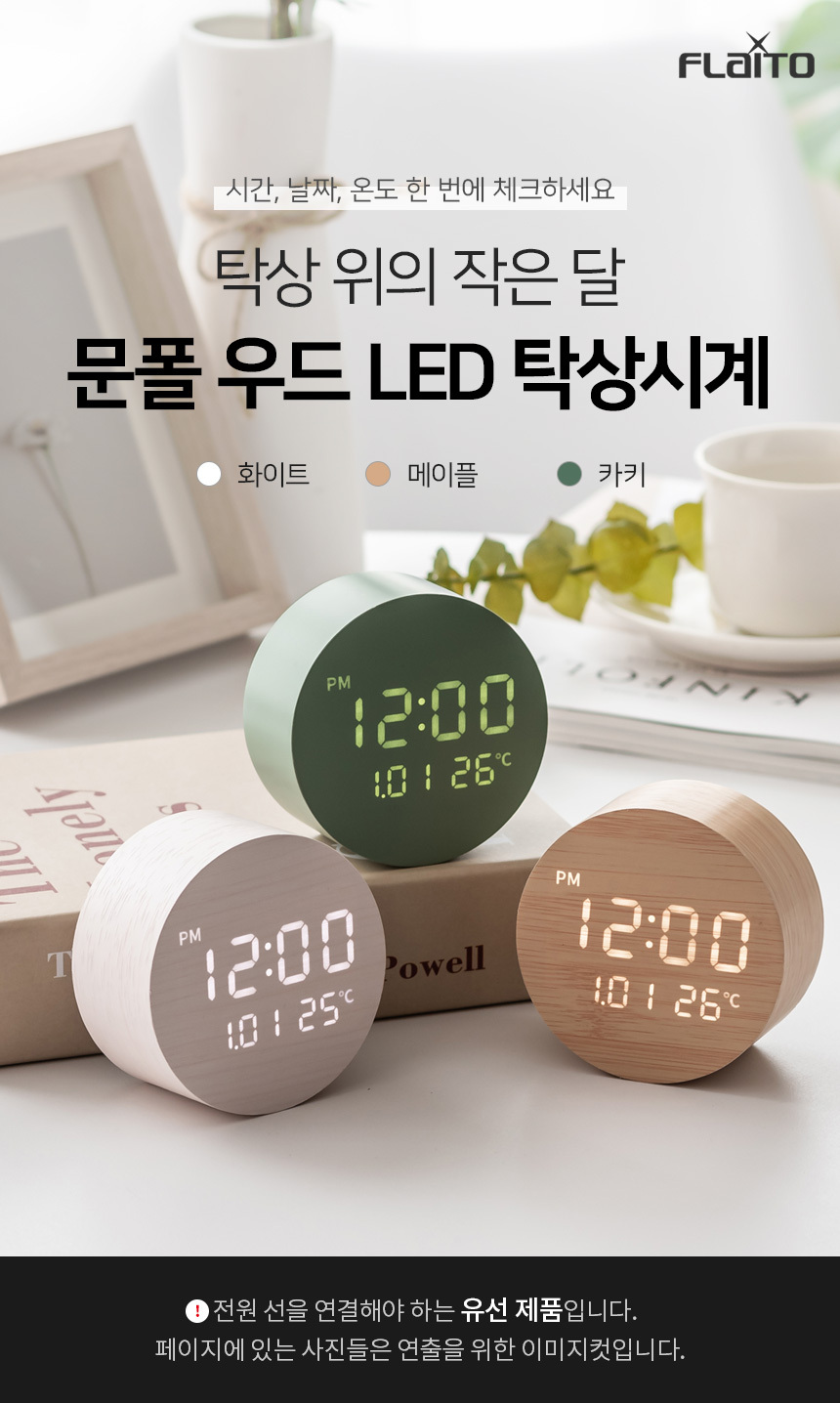 • 플라이토 문폴 우드  인테리어 LED 탁상시계
