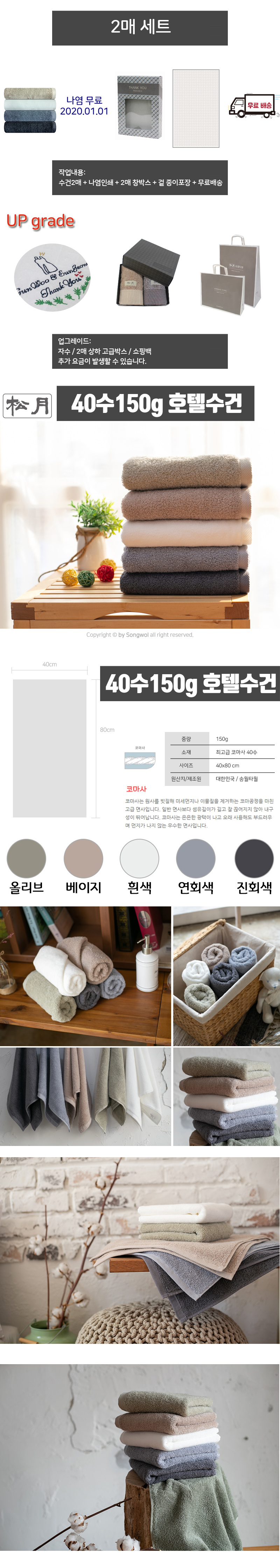 • 송월 40수 150g 호텔수건 2P 풀세트