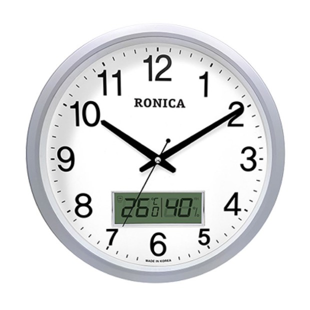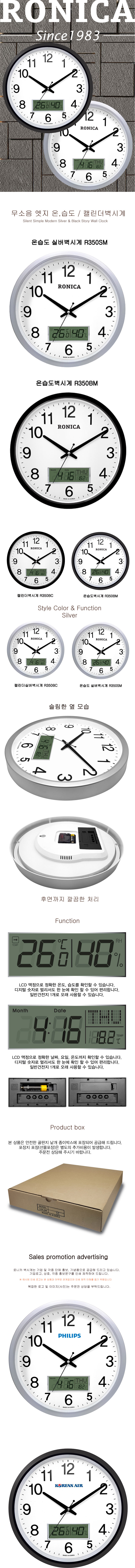 • 로니카 무소음 온습도 실버벽시계 R350SM