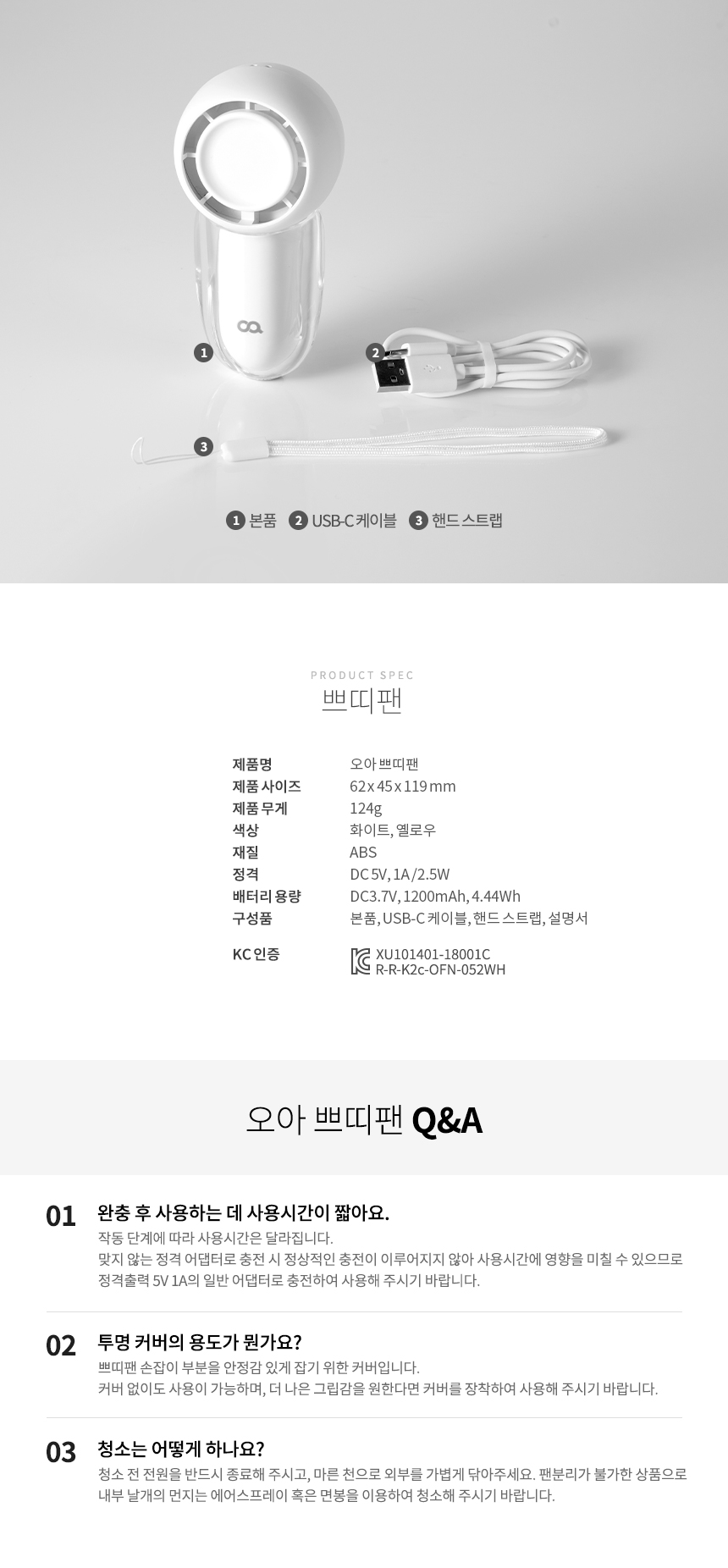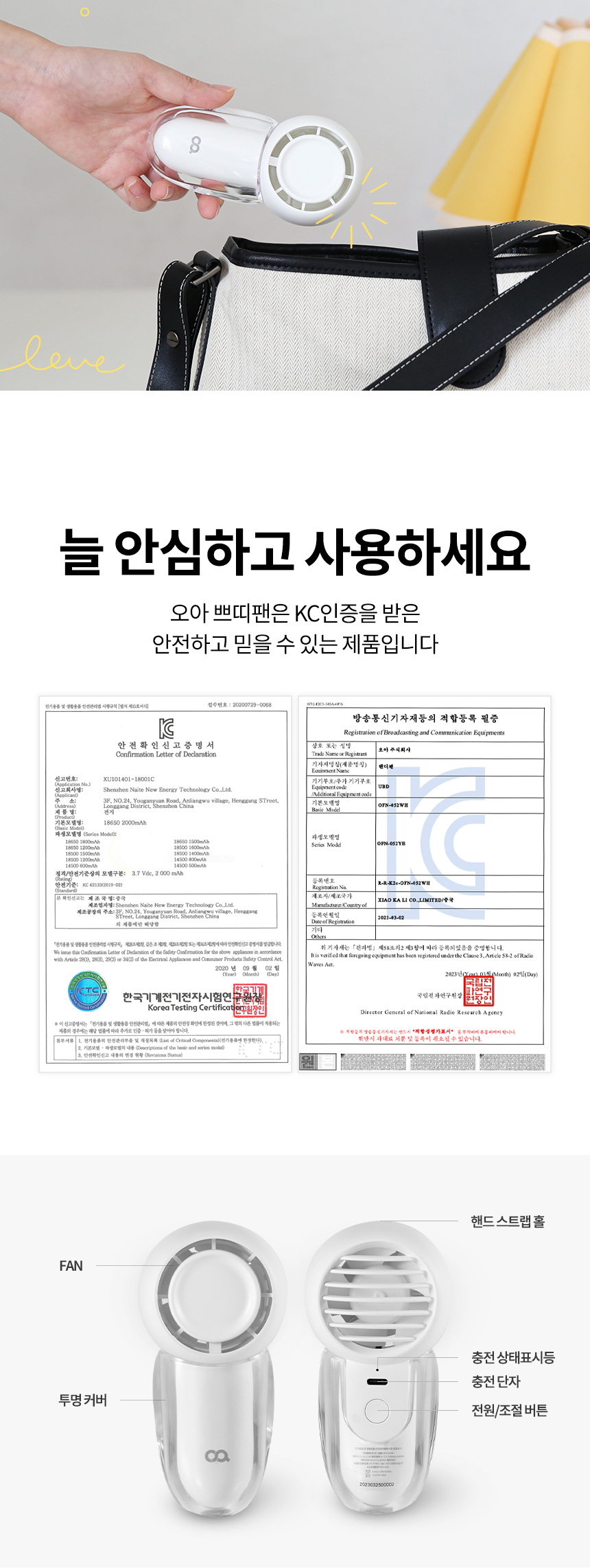 • 오아 쁘띠팬 미니 무선 휴대용 핸디 선풍기