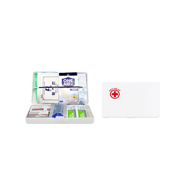 알콜스틱1,설압자1,핀셋(플라스틱)1,드레싱밴드(6*7cm),드레싱밴드)4.5*5.5cm)알콜스왑6개,반창고1개,면봉10p,솜6p,멸균거즈5cm,거즈붕대5cm,