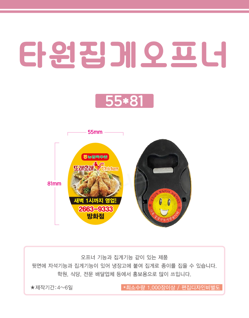 55*81 mm / 철판 위 종이합지 +코팅+ 뒷면 자석부착