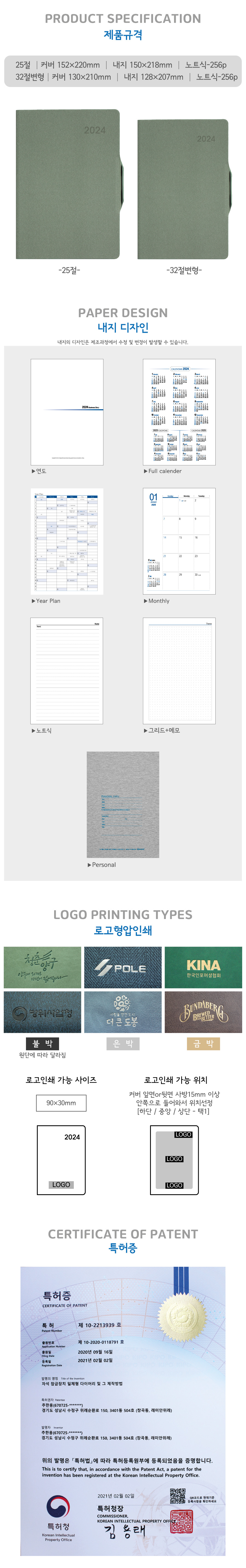 25절내지[150×218mm], 32절변형[128×208mm] / 습식PU원단