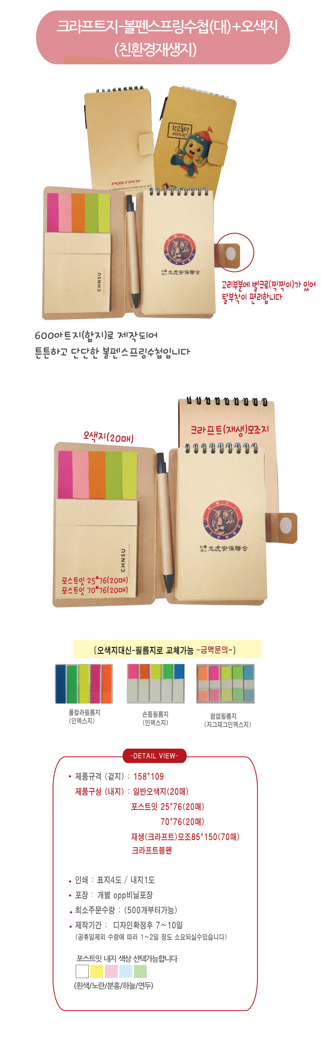 • 볼펜스프링수첩(대)-친환경재생지+오색지