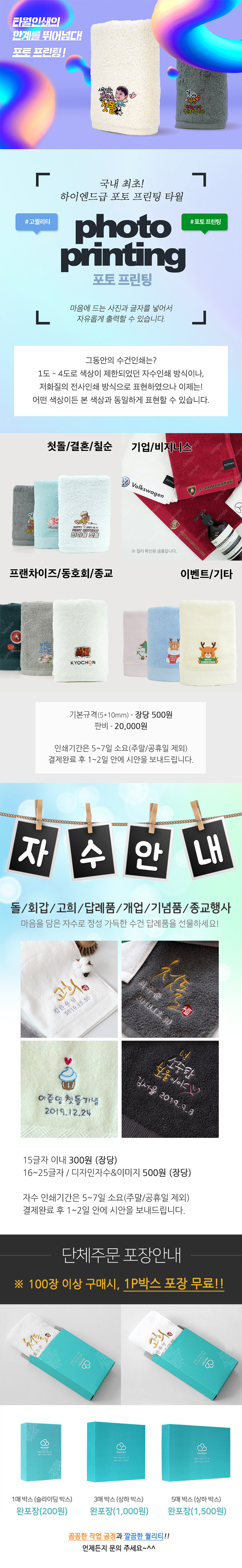 자수인쇄는 별도 문의 바랍니다.(난이도, 사이즈, 글자수에 따라 추가비용 있습니다)
