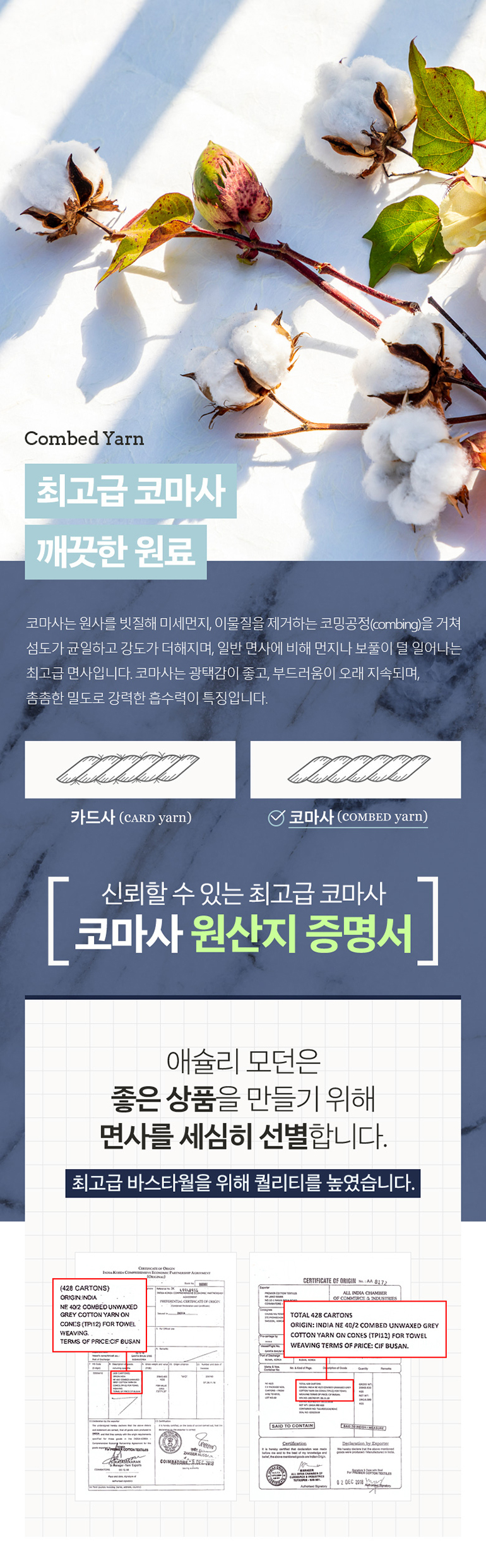 70*135 / 코마사면 100% 40수 500g