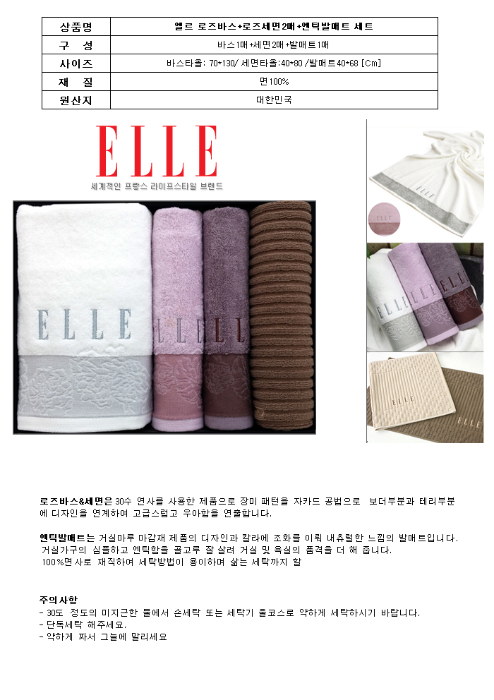 • 엘르 로즈바스+로즈세면2매+발매트 세트