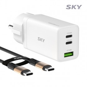 스카이 필 GaN 65W 3세대 초미니 멀티 3포트 PD3.0, PPS, QC4.0+ 초고속 A, C타입 유선 충전기+60W C to C 케이블 1.2m 세트