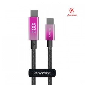 애니존 100W 초고속충전 핑크 오로라패브릭 LCD 케이블 CTC