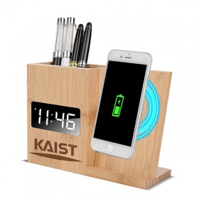 펜꽂이 무선충전 우드 LED시계