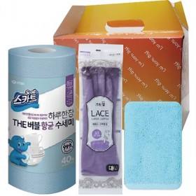 주방실속 세트 2종 A (수세미40매+크린랩 크린랲 컬러 고무장갑 중형)