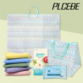[플씨드] 에스닉 일체형 장바구니 돗자리 + 모기퇴치 시어서커 무릎담요(S사이즈) + 썸머패치 + 손소독 물티슈(10매) 4종 세트