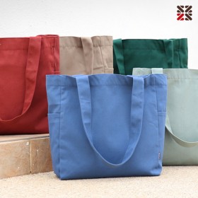 넓은 바닥면으로 넉넉한 수납이 가능한 황마 소재 마켓백