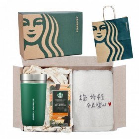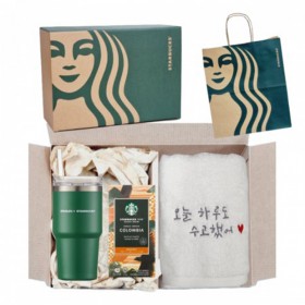 스타벅스 SS 스탠리 그린 켄처 텀블러 + 오수 영신 타올 호텔 수건 선물세트 + 비아커피